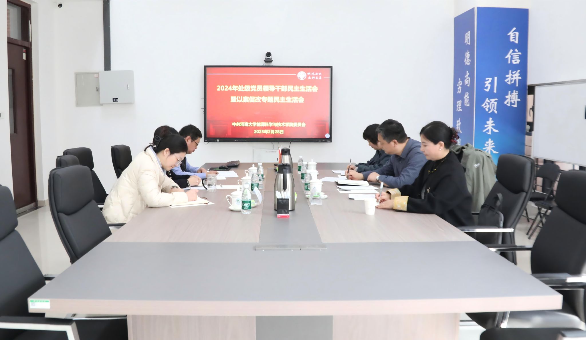 根据校纪委、校党委组织部工作部署,2月28日下午,抖音风 在郑州校区九章学堂北楼A203会议室召开2024年度处级党员领导干部民主生活会暨以案促改专题民主生活会。校第五督导组组长、正处级纪检监察员李贵仓,副组长、农学院党委副书记曹玉辉,督导组成员、药学院党委办公室主任李佳桓到会指导。学院全体领导班子成员参加会议。会议由院党委书记程亚敏主持。