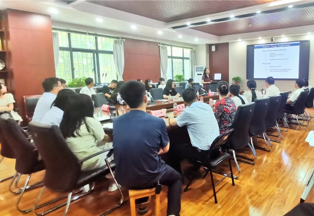 受聘仪式结束后,吉晓燕教授作了题为“Advanced fluid materials for energy applications”的学术报告。她在报告中深入浅出的从离子液体的定义出发,结合离子液体本身的特性,详细介绍了离子液体在CO2分离和利用、可持续电池以及生物质能源和绿氢等方面的应用情况。报告后,学院教师结合自身研究课题与吉教授进行了深入的探讨和交流。