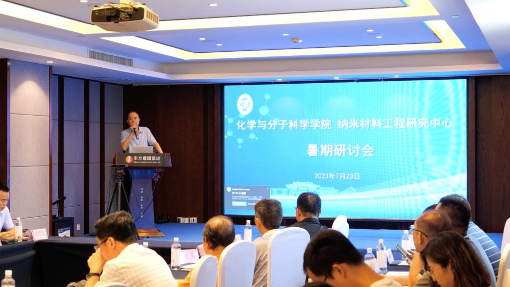 、纳米材料工程研究中心的领导班子成员、科研平台负责人、高层次人才代表、系室主任、党支部书记及青年教师代表,龙子湖新能源实验室、柔性电子产业技术研究院代表等参加会议。研讨会由化学与分子科学学院党委书记常凤香主持。