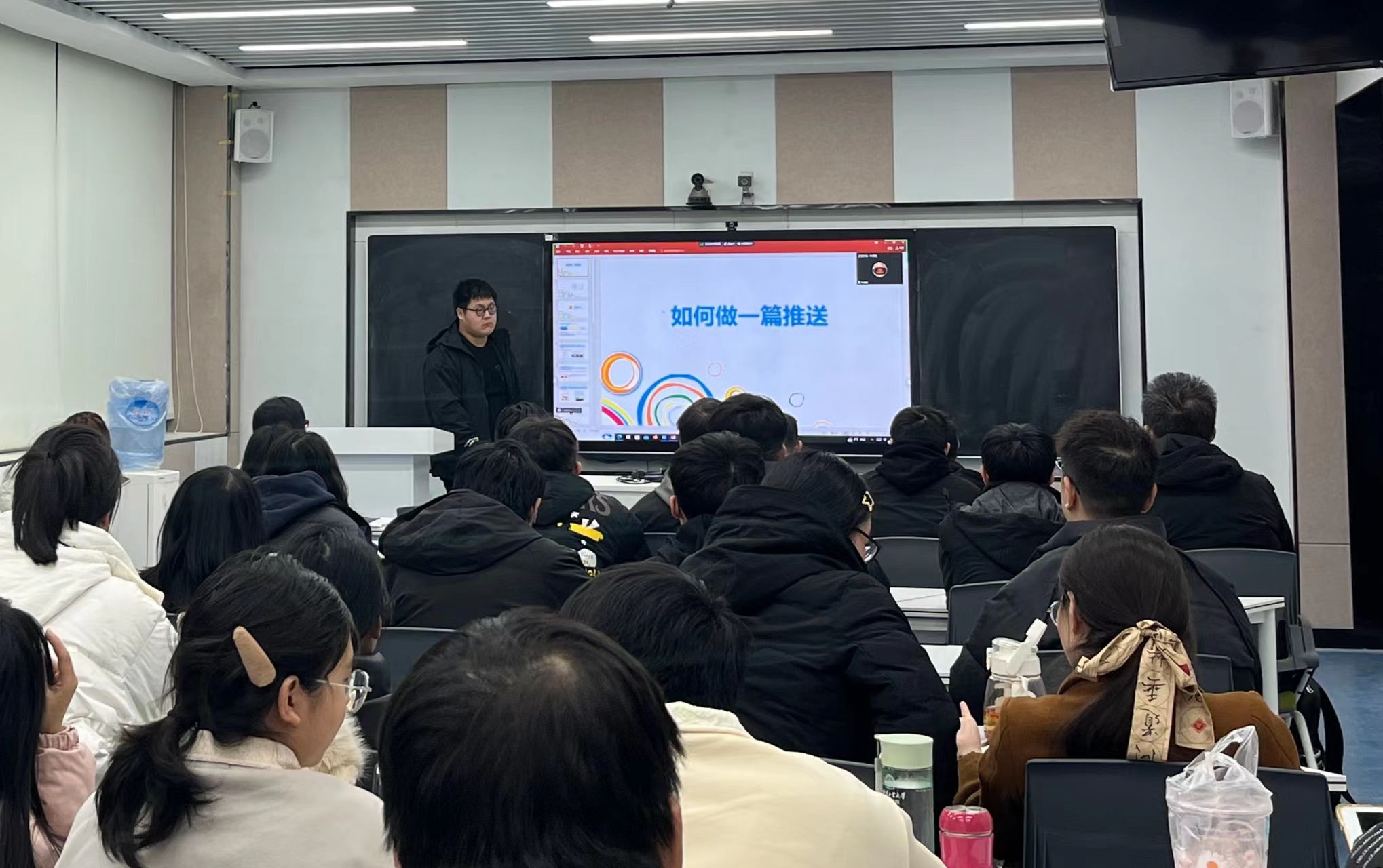 开展“宣传写作能力培养”讲座,学院负责宣传工作的老师、学生会宣传部同学和2023级全体研究生参加。