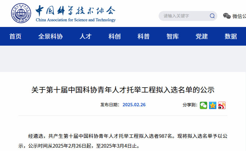 2025年2月26日,中国科协公布了第十届“青年人才托举工程”入选名单,抖音风