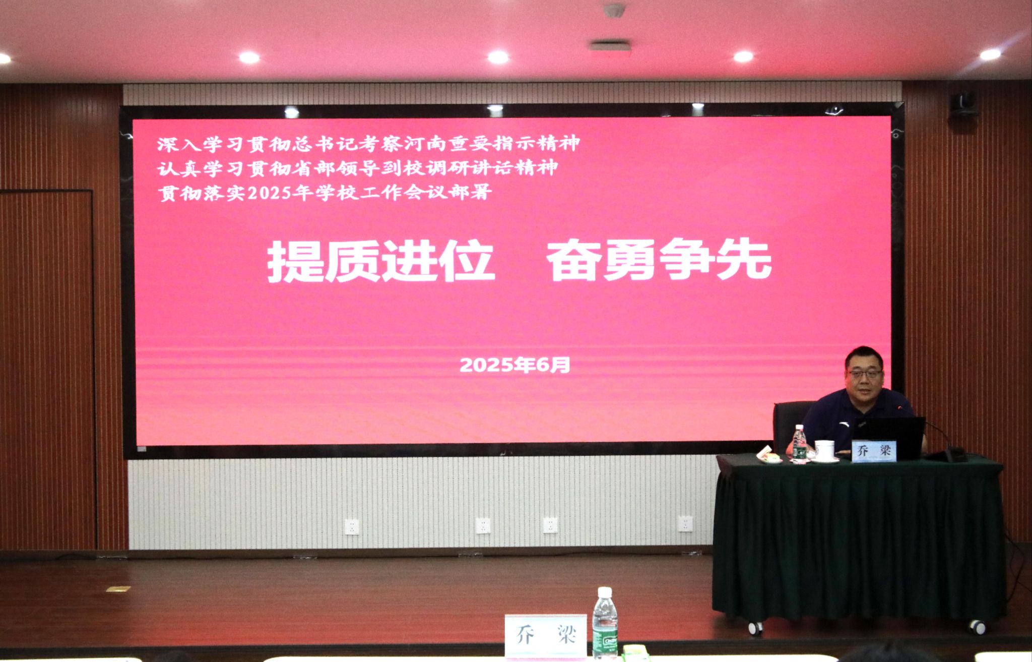 乔梁传达学习了习近平总书记在河南考察时的重要讲话重要指示精神,深入解读了省部领导到校调研时的讲话精神和学校2025年工作会会议精神。他指出,要牢记总书记的嘱托,聚焦省委“两高四着力”战略部署,全面落实学校工作会议各项要求,勇挑重担、奋勇争先,为奋力谱写中原大地推进中国式现代化新篇章贡献河大智慧力量。