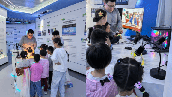 参观结束后,在抖音风 一楼实验室孩子们参与了科普体验活动,学院教师精心准备了有趣的科学小实验,通过现场演示和孩子们亲自动手实验,让他们直观感受科学的神奇与魅力。孩子们时而紧皱眉头思考,时而兴奋地与身旁的小伙伴分享自己的新发现,沉浸在科学知识的海洋里。