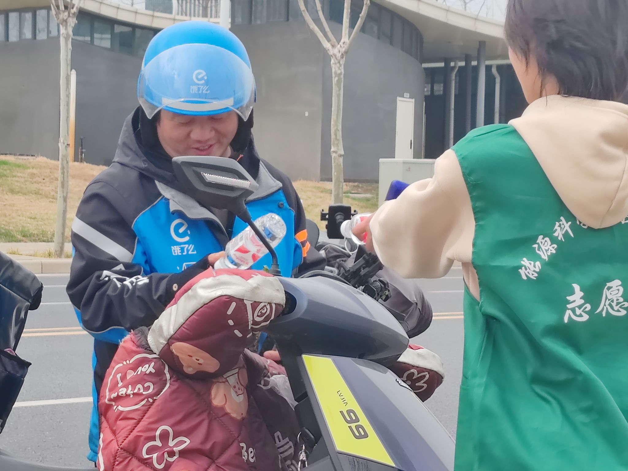 活动期间,学院在南门和西门设立爱心服务点,为环卫工人、快递小哥等城市基层工作者送上饮用水共服务500余人次各团支部轮班值守,用真诚的关怀致敬这些“城市守护者”的辛勤付出。参与活动的学生表示:“通过亲手传递温暖,我们更加理解了平凡岗位的伟大,也感受到助人带来的快乐。”这一行动不仅传递了社会正能量,更唤起了公众对基层劳动者的关注与尊重。