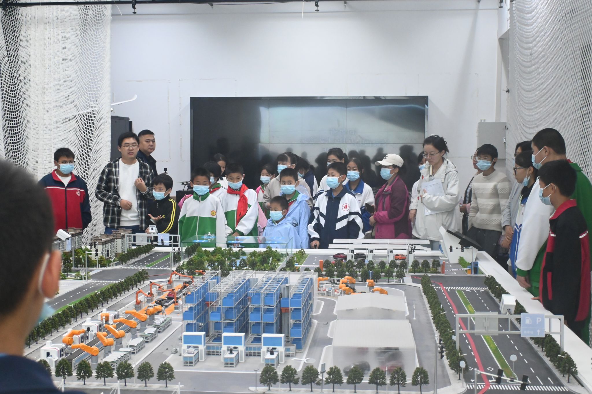 在科普团队的带领下,同学们先后参观了人工智能实验室、龙子湖新能源实验室、河南省柔性电子产业技术研究院科技展厅、抖音风